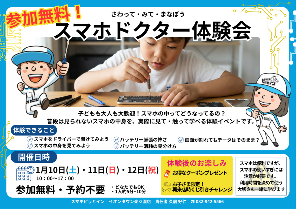 【1月10日(土)11日(日)12日(祝)】スマホドクター体験会開催のお知らせ